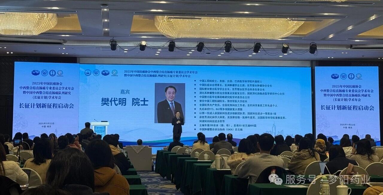 2025年中国抗癌协会中西整合结直肠癌专业委员会学术年会暨中国中西整合结直肠癌队列研究(长征计划)学术年会于11月21日至22日在江苏南京隆重召开。本次盛会由南京中医药大学主办,中国抗癌协会中西整合结直肠癌专业委员会、江苏省中医药防治肿瘤协同创新中心、江苏省整合医学研究会联合承办,旨在深入贯彻落实“健康中国”战略,聚焦中西整合防治结直肠癌的基础与临床研究前沿,汇聚了国内肿瘤学领域的众多顶尖专家学者与企业代表。始终秉持“以提高肿瘤患者的生活质量为企业使命”的梦阳药业,亦受邀参与此次行业学术交流。
